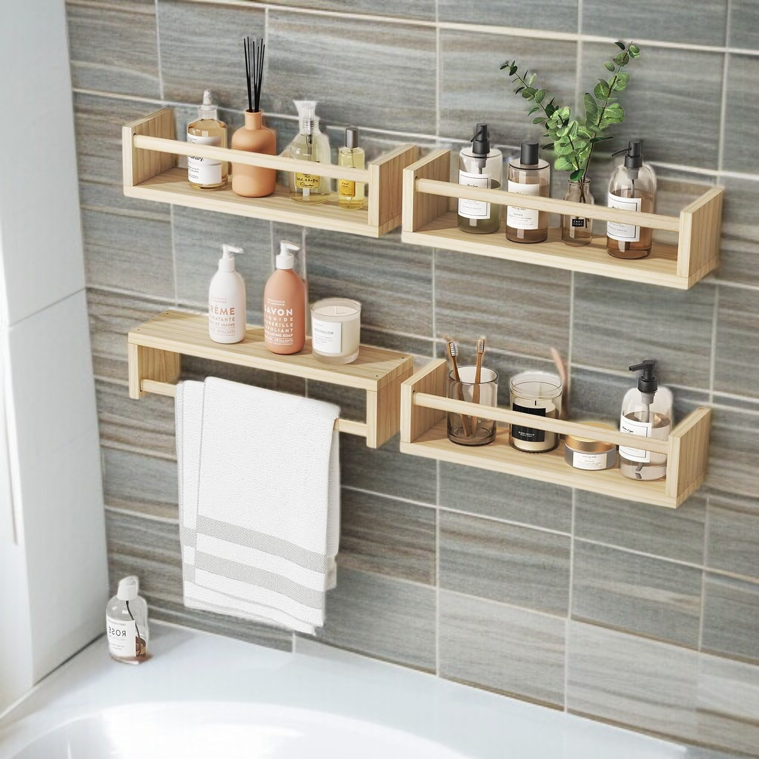 無垢材ウォールラック 壁掛け 本 雑誌 絵本 ラック 壁掛け キッチン スパイスラック 収納ラック